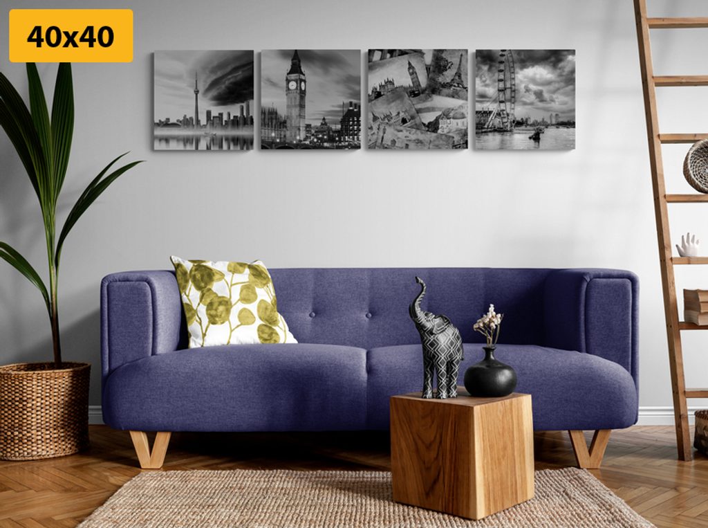 Set obrazů tajuplná města v černobílém provedení zachycuje ikonické siluety měst z celého světa. Čtyři obrazy přinášejí pohledy na majestátní památky a městské krajiny, jako je Big Ben, Toronto a Londýn. Černobílé provedení dodává kompozicím elegantní a nadčasový vzhled, který skvěle doplní jakýkoliv interiér. Ideální pro zútulnění obývacího pokoje, pracovny nebo moderní galerie. Kvalita tisků zaručuje věrnost detailů a dlouhou životnost, takže si můžete užívat krásu těchto měst po dlouhá léta.