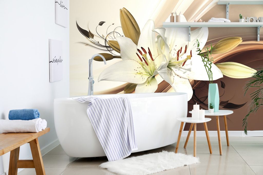 SAMOLEPÍCÍ TAPETA DECENTNÍ LILIE NA ABSTRAKTNÍM POZADÍ - SAMOLEPÍCÍ TAPETY - TAPETY