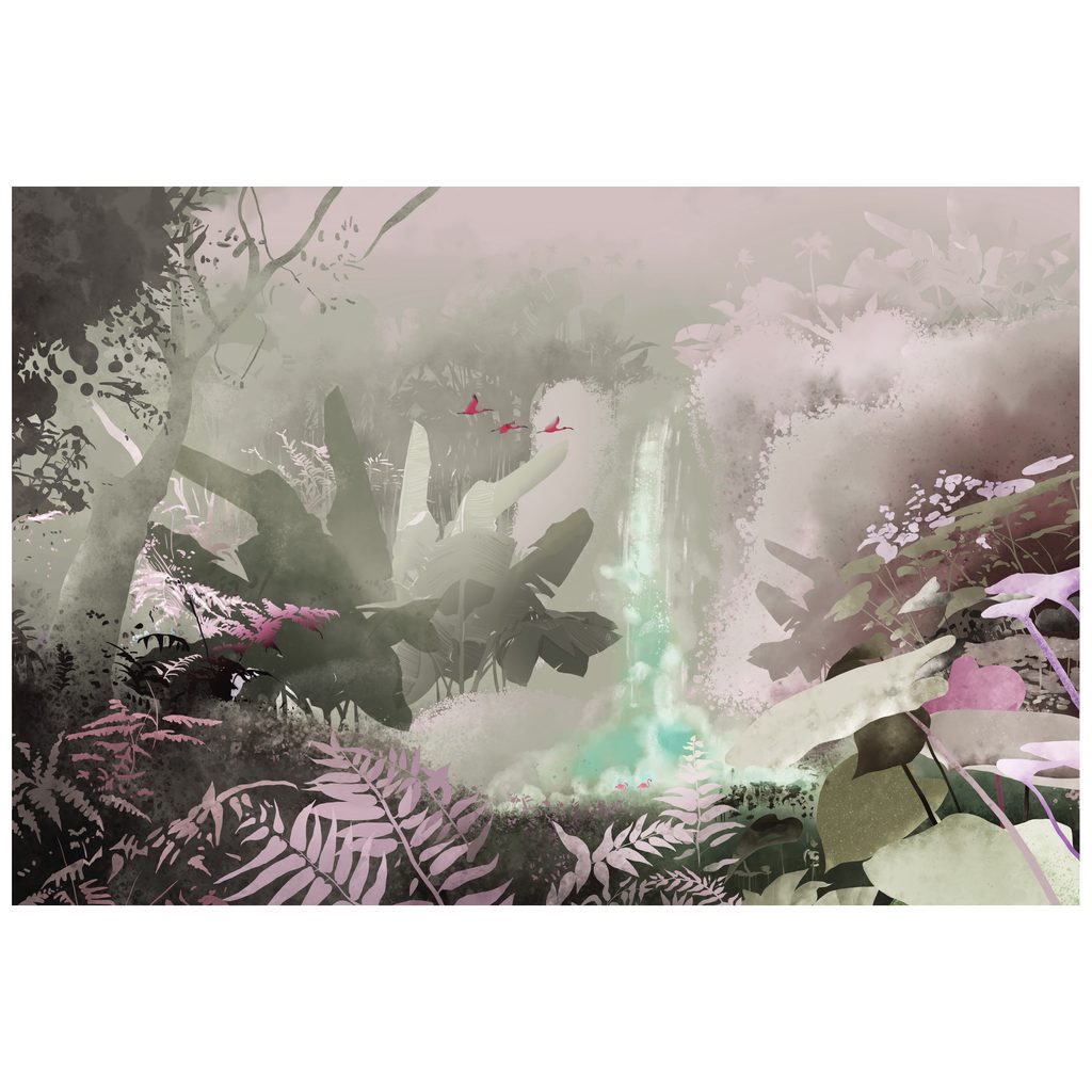 Jemné kouzlo nedotčené džungle se promítá do této tapety, která zachycuje mystickou atmosféru tropického pralesa. Motiv je obohacen o detailní listy, květiny a jemně se vznášející vodopád, což vytváří pocit klidu a harmonie. Dominují zde přírodní barvy, jako jsou zelené, fialové a pastelové odstíny, které navozují příjemnou a uklidňující náladu. Tato tapeta je ideální pro oživení interiéru a přináší do vašeho domova kus přírody. Kvalitní materiály zaručují dlouhou životnost a snadnou aplikaci.