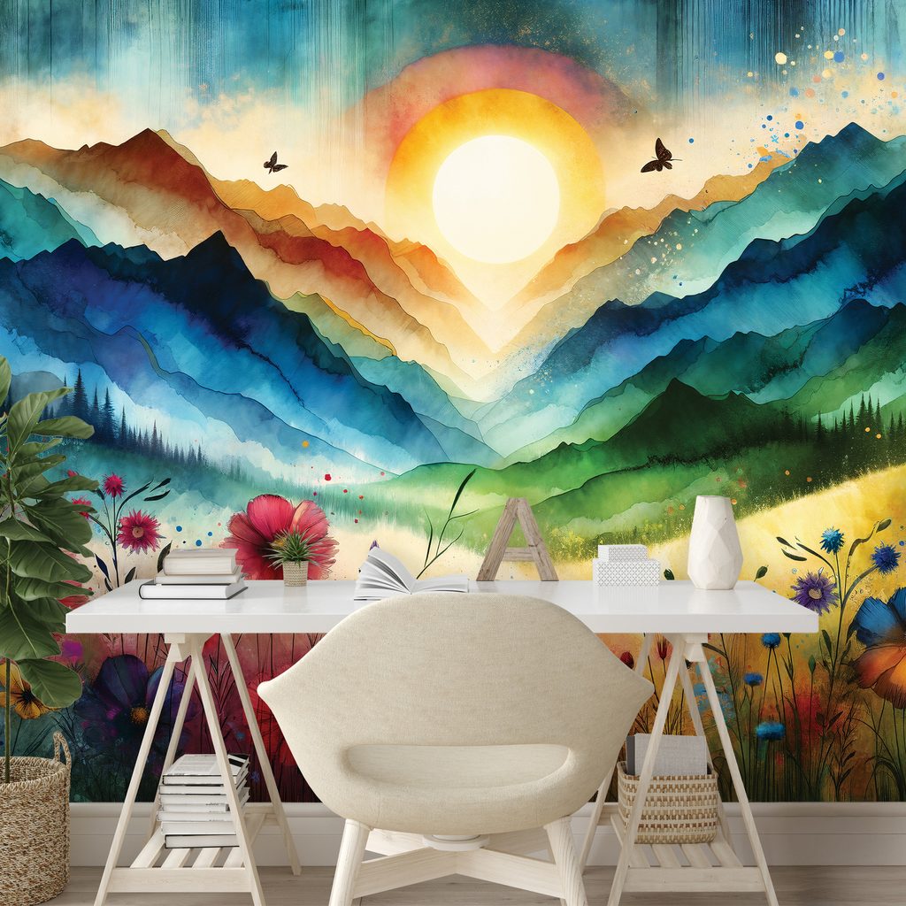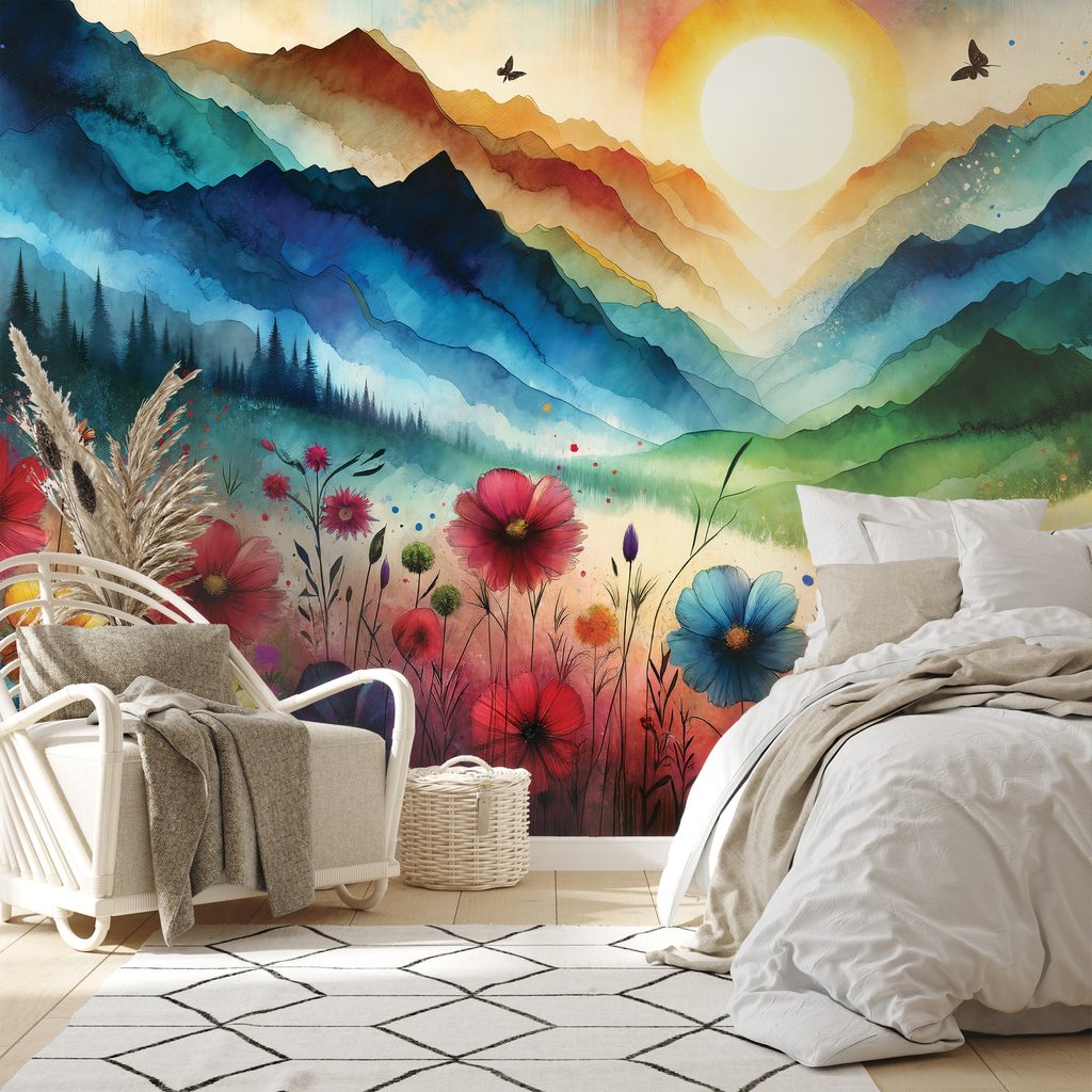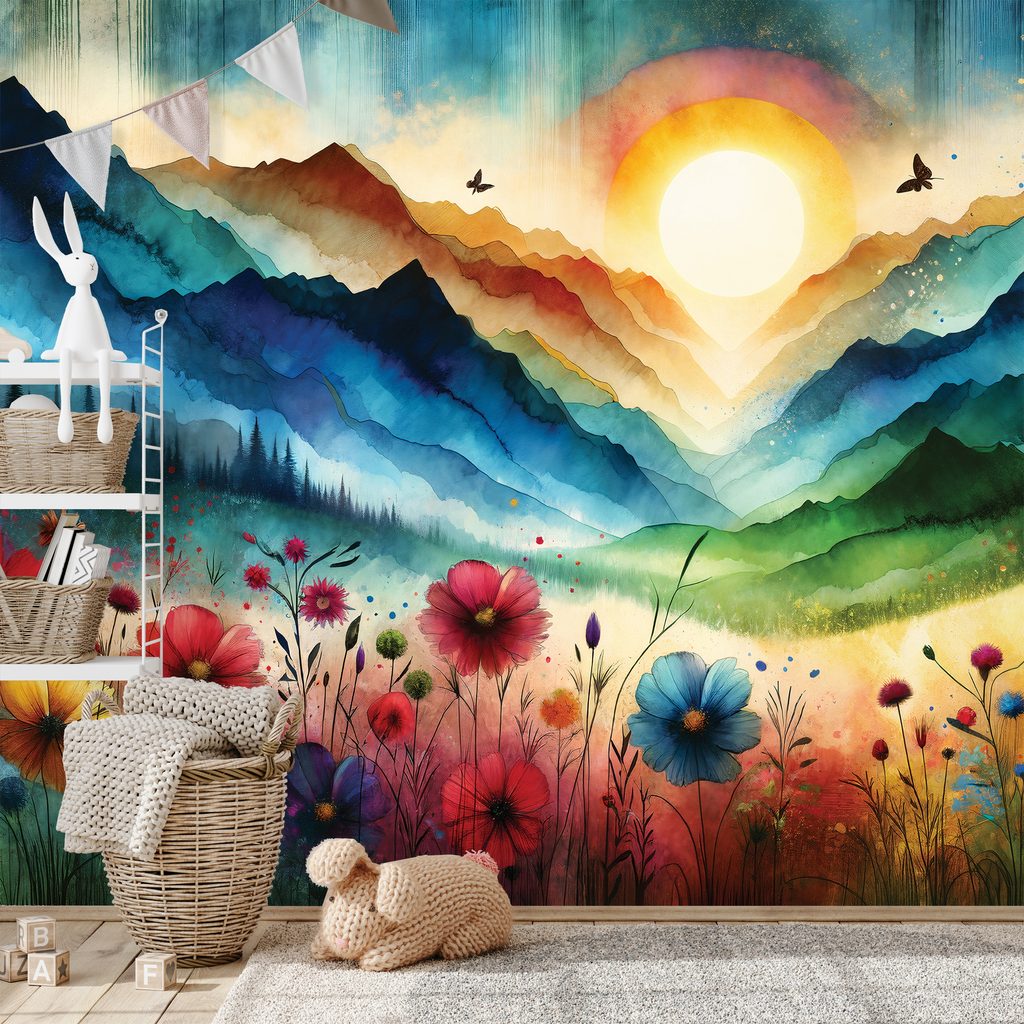 Barevná horská krajina s květinami přináší do vašeho interiéru nádech přírody a klidu. Motiv je bohatý na detaily, zahrnující majestátní hory, rozkvetlé louky a jasně zářící slunce. Živé barvy, jako jsou modrá, zelená, žlutá a červená, vytvářejí veselou a povzbudivou atmosféru. Tato samolepící tapeta je ideální pro oživení jakéhokoli prostoru, ať už jde o obývací pokoj, ložnici nebo dětský pokoj. Kvalita materiálu zajistí snadnou aplikaci a dlouhou životnost, takže si můžete užívat krásu přírody každý den.