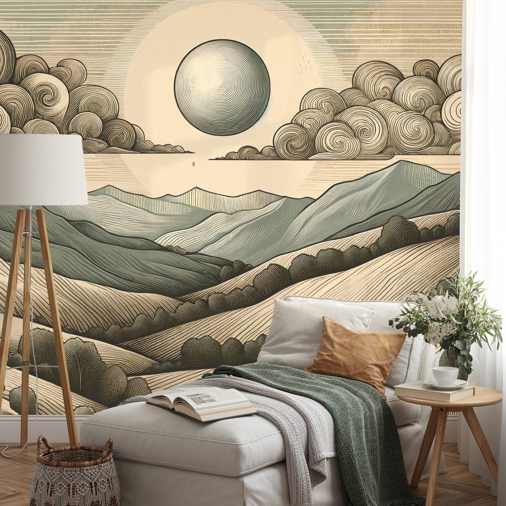 Tapeta horská krajina v retro stylu