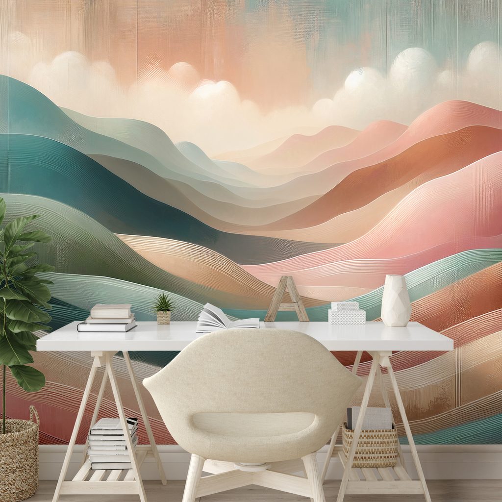 Tapeta sen o barevných horách přináší do vašeho interiéru nádherný abstraktní motiv. Jemné vlny hor v různých odstínech modré, růžové a béžové vytvářejí harmonickou atmosféru. Kombinace barev a jemných linií navozuje pocit klidu a pohody. Tato tapeta je ideální pro obývací pokoje, ložnice nebo pracovny, kde chcete podpořit kreativitu a relaxaci. Vyrobená z kvalitních materiálů, zaručuje dlouhou životnost a snadnou aplikaci.