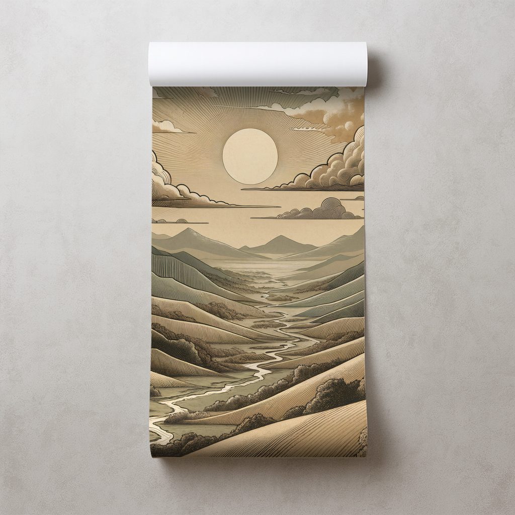 Tapeta vintage krajina s horami a sluncem