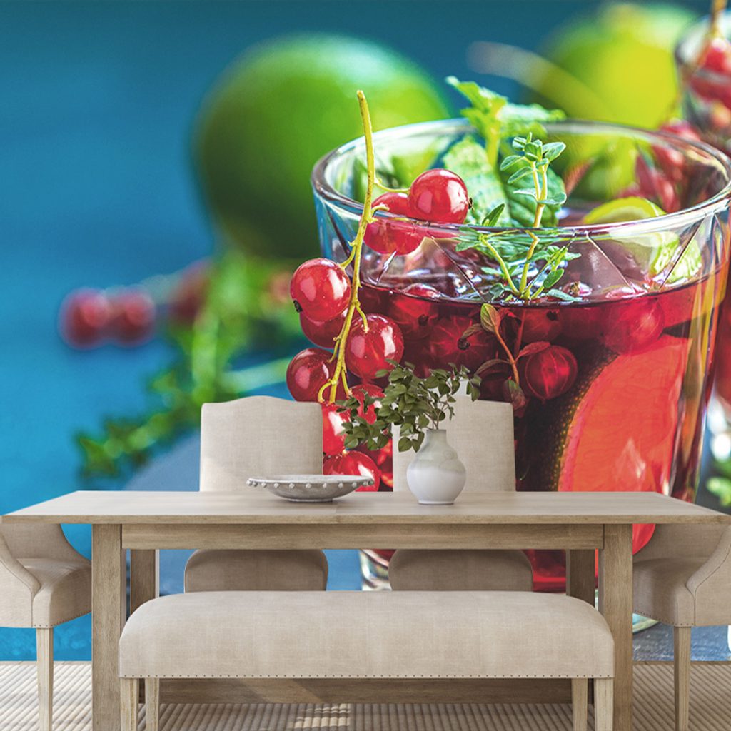 Fototapeta s motivem červeného koktejlu přináší do vašeho prostoru osvěžující atmosféru. Detailní zobrazení sklenice s koktejlem, ozdobenou červenými bobulemi a limetkou, dodává této tapetě živost a eleganci. Dominantní červené a zelené odstíny vytvářejí radostnou a příjemnou náladu, ideální pro relaxaci. Tapetu lze skvěle využít v kuchyni, jídelně nebo baru, kde podtrhne atmosféru pohody. Vyrobená z kvalitního materiálu, tato fototapeta zaručuje dlouhou životnost a snadnou aplikaci.