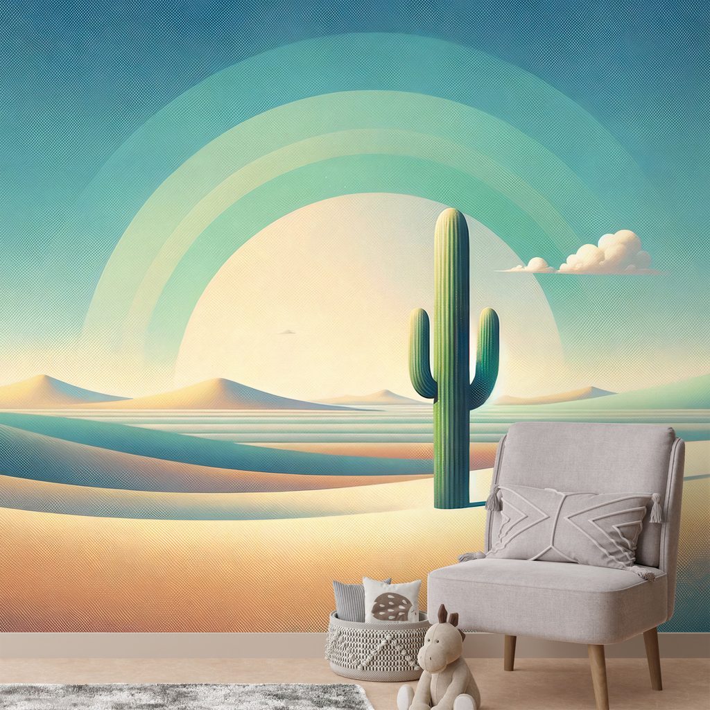 Tapeta pastelová poušť s kaktusem