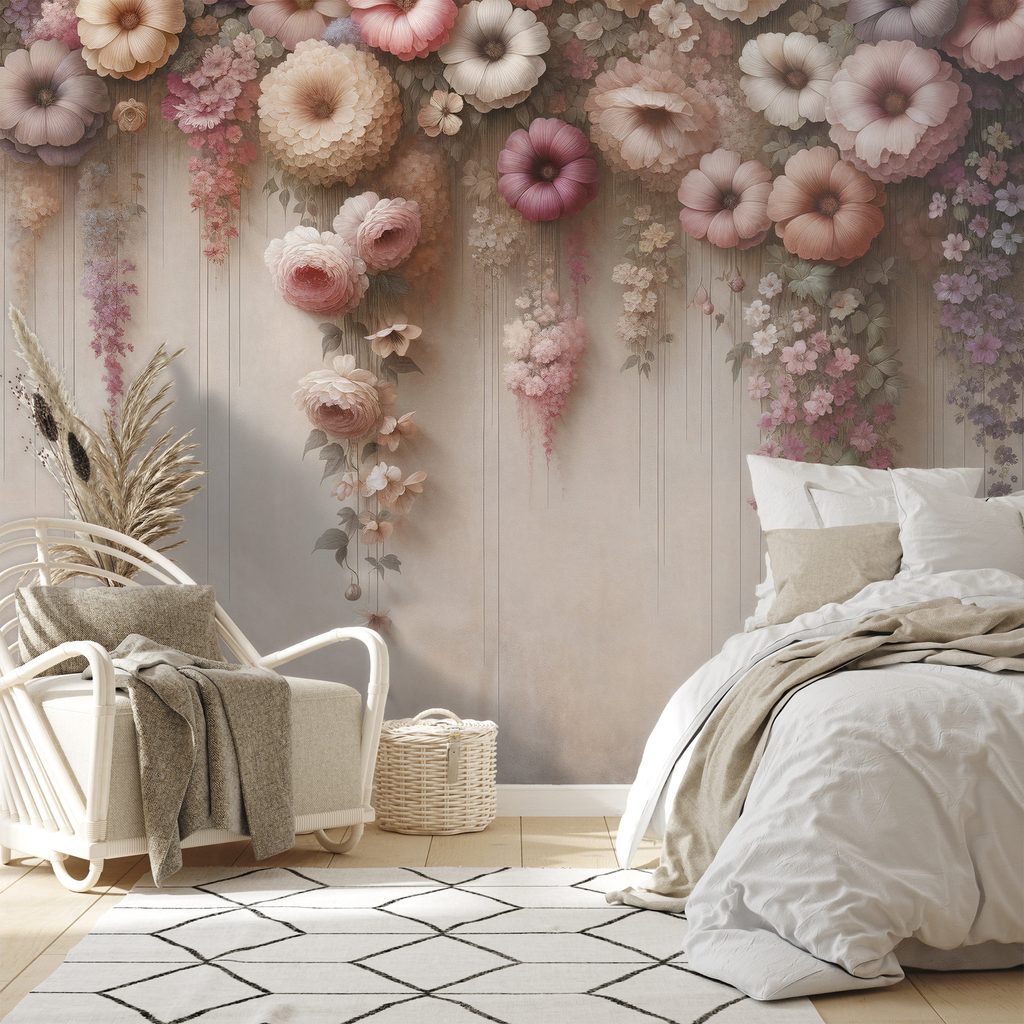 Tapeta pastelové visící květy