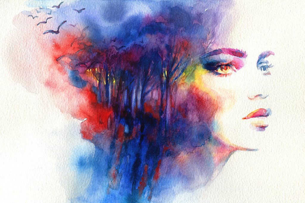 Motiv tapety zobrazuje půvabnou ženskou postavu zasazenou do malebného pozadí přírody. Detaily, jako jsou stromy a ptáci, se elegantně prolínají s tváří, což vytváří harmonickou atmosféru. Barvy jsou živé, přecházející od teplých červených a oranžových tónů po studené modré a fialové, což dodává obrazu dynamiku a hloubku. Tato tapeta je ideální pro oživení interiéru a dodání osobitého stylu pokoji. Vyrobena z kvalitních materiálů, zaručuje dlouhou životnost a snadnou aplikaci.