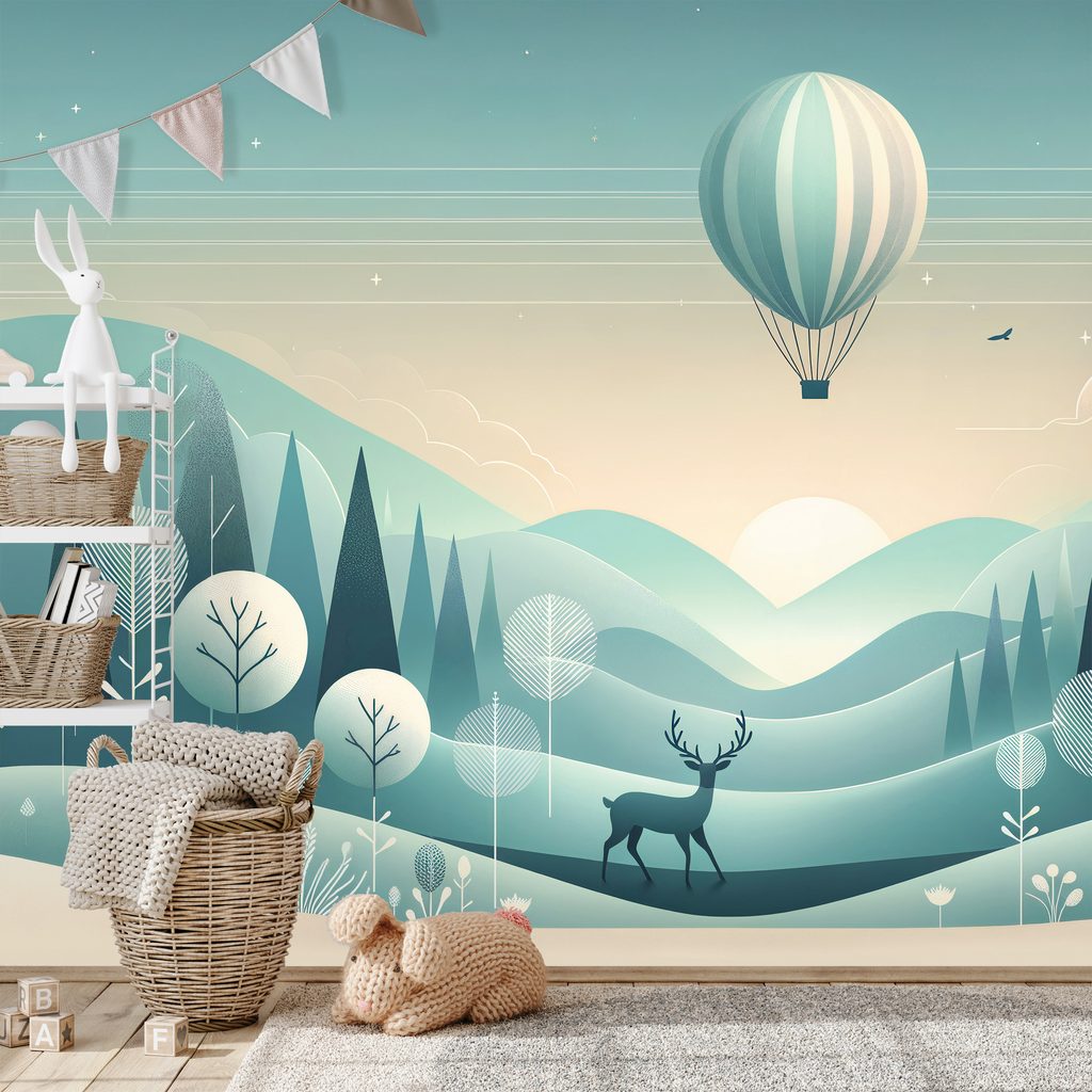 Samolepící tapeta s motivem snové krajiny s balónem přináší do vašeho prostoru kouzlo a pohodu. V popředí se majestátně tyčí jelen, zatímco v pozadí se vznáší barevný horkovzdušný balón nad jemně zvlněnými horami. Dominují jemné odstíny modré a zelené, které vytváří uklidňující atmosféru. Tato tapeta je ideální volbou pro obývací pokoje, dětské pokoje či pracovny, kde podpoří kreativitu a relaxaci. Kvalitní materiál zaručuje snadnou aplikaci a dlouhou životnost.