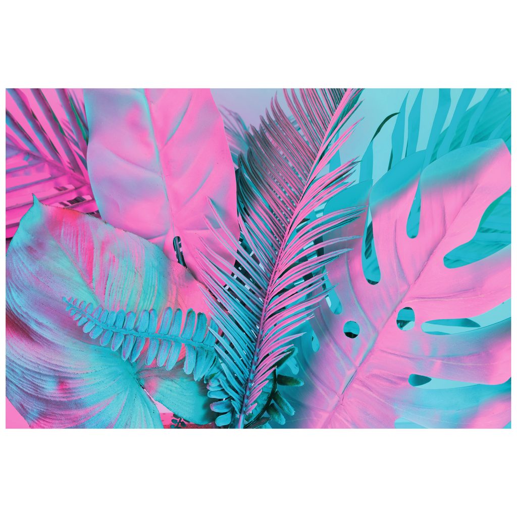 Tapeta s motivem palmových listů v neobyčejných barvách přináší do vašeho interiéru exotickou atmosféru. Detaily listů jsou zpracovány v živých odstínech růžové a modré, které vytvářejí fascinující kontrast. Tato kombinace barev dodává prostoru svěžest a energii, ideální pro moderní design. Doporučujeme ji použít v obývacím pokoji nebo ložnici pro vytvoření jedinečné atmosféry. Tapeta je vyrobena z kvalitního materiálu, který zajišťuje dlouhou životnost a snadnou aplikaci.