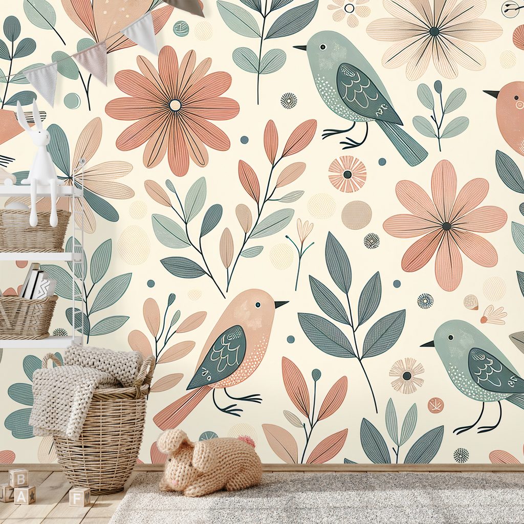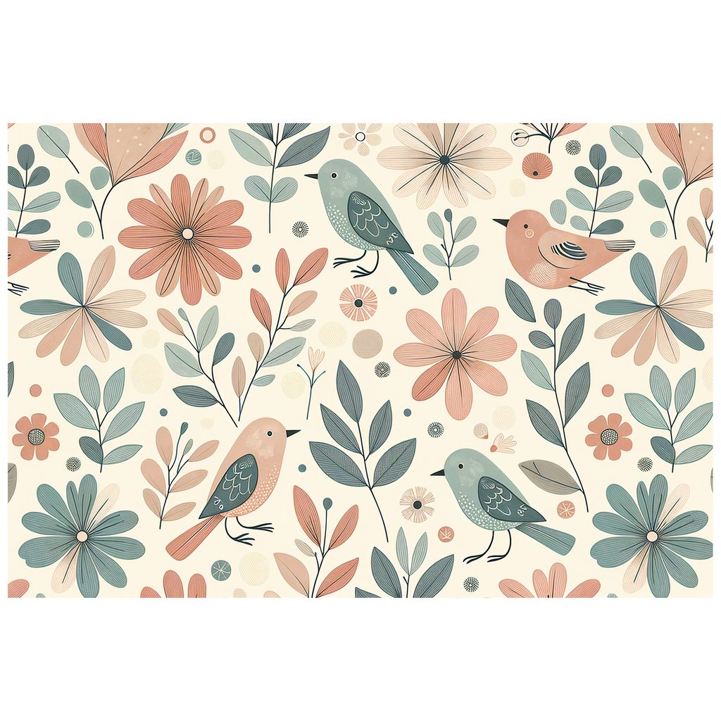 Vytvořte si útulný prostor s touto fototapetou s pastelovými ptáčky a květinami. Motiv je bohatý na detaily, včetně různobarevných ptáků a různých květinových vzorů, které dodávají hravost. Barvy jsou jemné a harmonické, což vytváří klidnou a veselou atmosféru. Ideální pro dětské pokoje, obývací prostory nebo jako příjemný prvek do ložnice. Tapeta je vyrobena z kvalitních materiálů, které zajišťují dlouhou životnost a snadnou aplikaci.