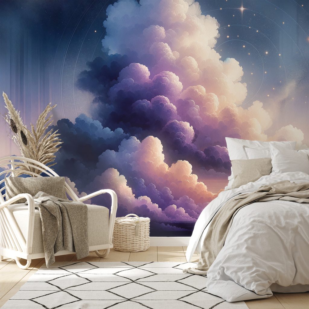 Samolepící tapeta s motivem hvězdného nebe nad oblačnou krajinou přináší do vašeho prostoru kouzlo noční oblohy. Na tapetě se prolínají jemné odstíny modré, fialové a bílé, které vytvářejí uklidňující atmosféru. Měkké mraky a zářící hvězdy dodávají celému motivu magický nádech. Ideální pro ložnice, dětské pokoje nebo relaxační zóny. Kvalitní materiál zajišťuje snadnou aplikaci a dlouhou životnost.