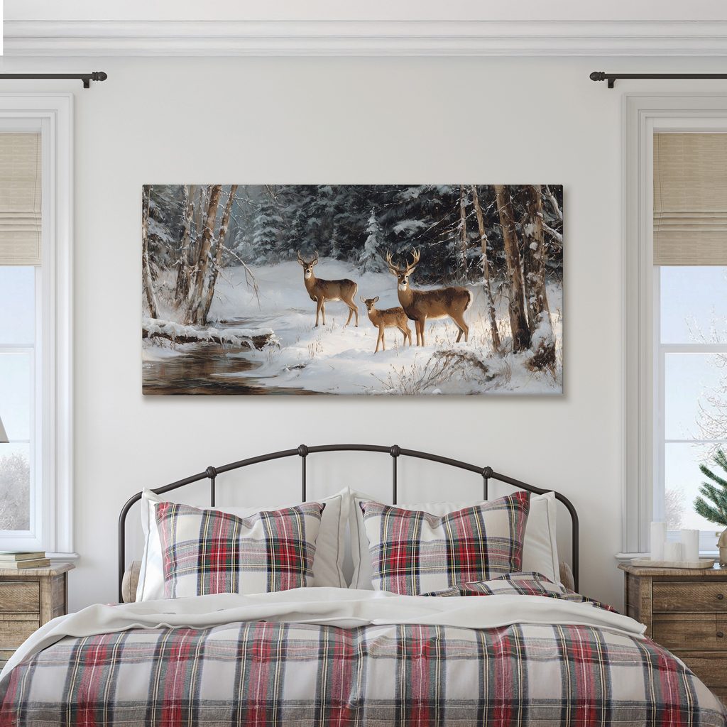 OBRAZ VÁNOČNÍ JELEN V LESE - VÁNOČNÍ A ZIMNÍ OBRAZY - OBRAZY