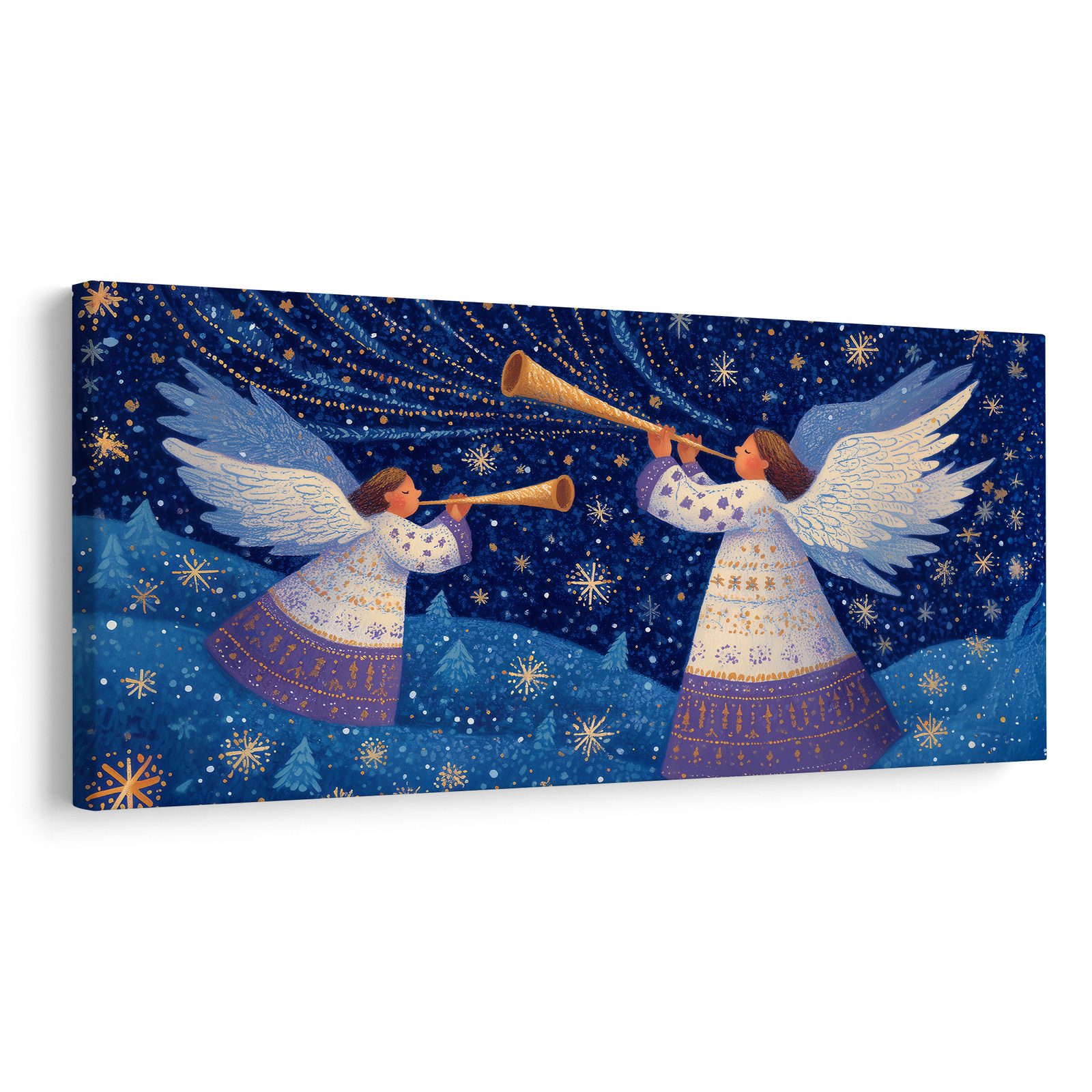 VÁNOČNÍ OBRAZ ANDĚL NAD ZIMNÍ VESNICÍ - VÁNOČNÍ A ZIMNÍ OBRAZY - OBRAZY