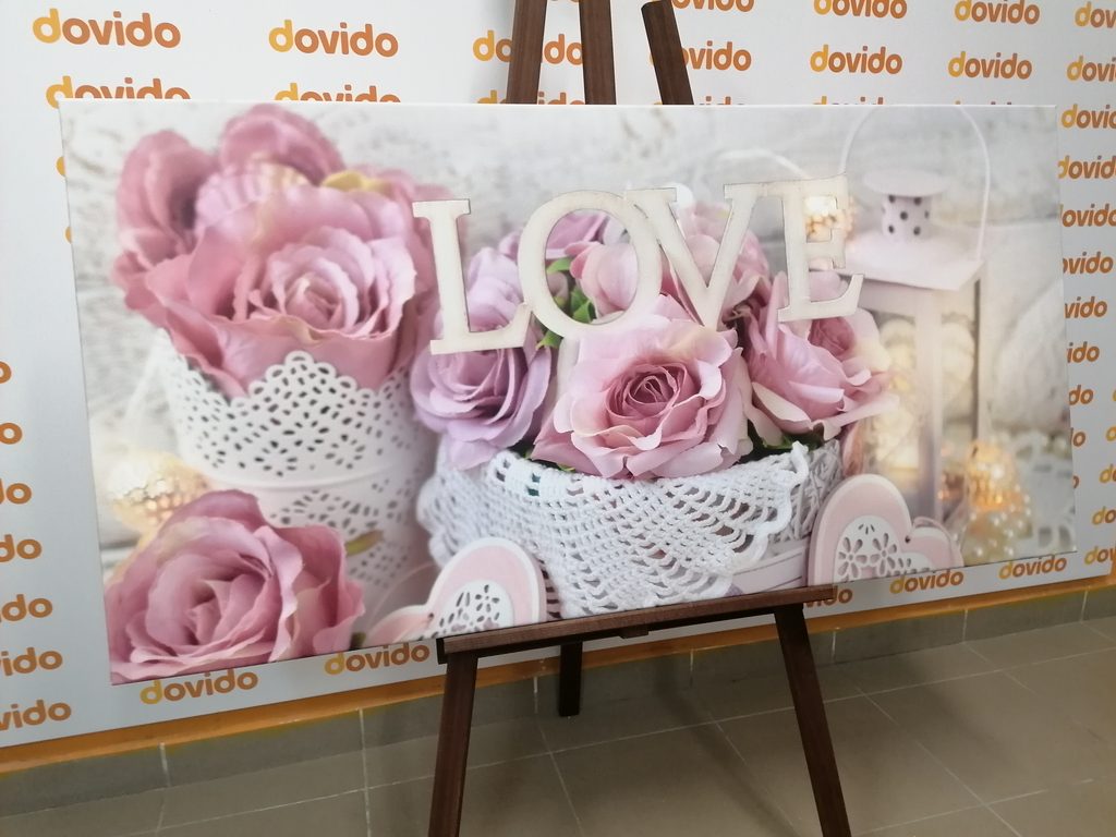 Obraz s vintage dekorací a nápisem "Love" přináší do vašeho interiéru romantickou atmosféru. Hlavním motivem jsou jemné růžové květiny umístěné v elegantních košíčkách, doplněné o stylové dekorativní prvky. Teplé a měkké barvy vytvářejí útulný pocit, ideální pro vytvoření pohody ve vašem domově. Tento obraz je skvělou volbou pro ložnici, obývací pokoj nebo jako dárek pro vaše blízké. Kvalitní tisk na pevném plátně zaručuje dlouhou životnost a snadnou údržbu.