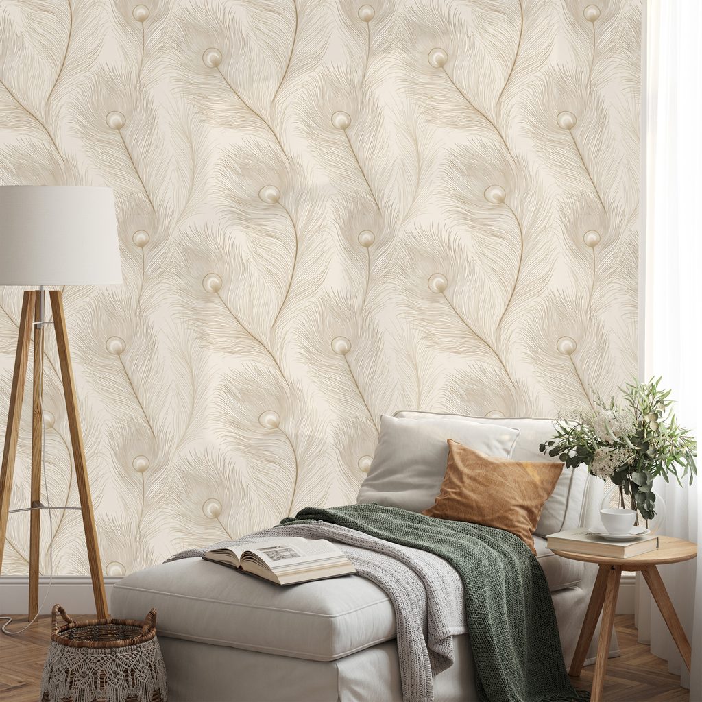 Samolepící fototapeta béžová elegance s ptačími pery