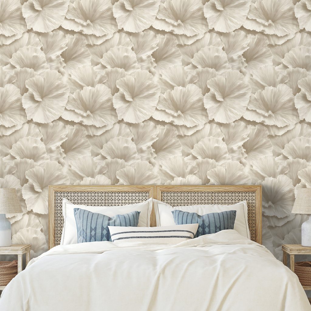 Tapeta béžové květy v jemném stylu