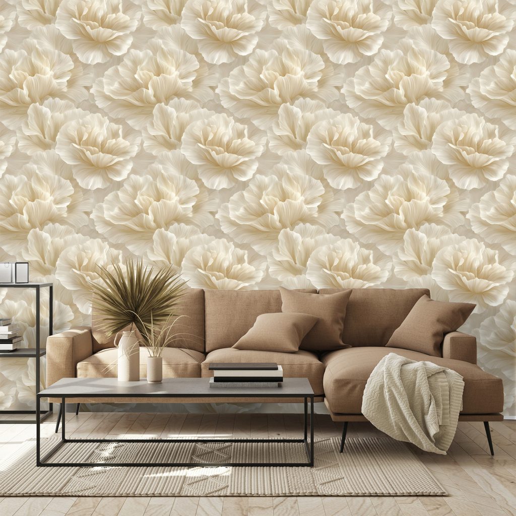 Tapeta krémové květy ve vintage stylu