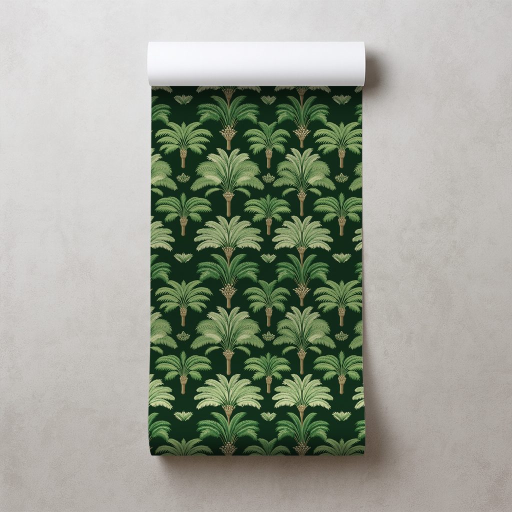 Tapeta se zelenými palmami na tmavém pozadí přináší do vašeho interiéru exotický nádech. Motiv bohatých palm s jemnými detaily vytváří dojem tropického ráje. Kombinace svěží zelené a tmavé barvy dodává prostoru hloubku a eleganci. Ideální pro obývací pokoj nebo ložnici, kde oživí každou stěnu. Kvalitní provedení zaručuje dlouhou životnost a snadnou aplikaci na zeď.